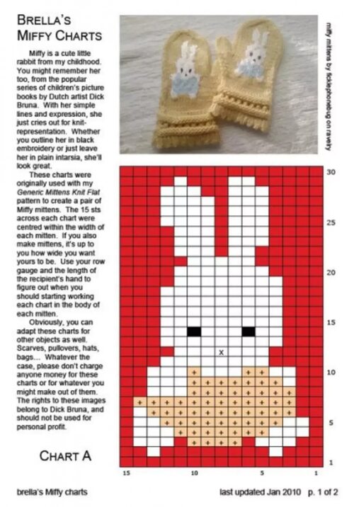 - Следуя схеме рисунка, вяжите варежку, включая рисунок кошки.