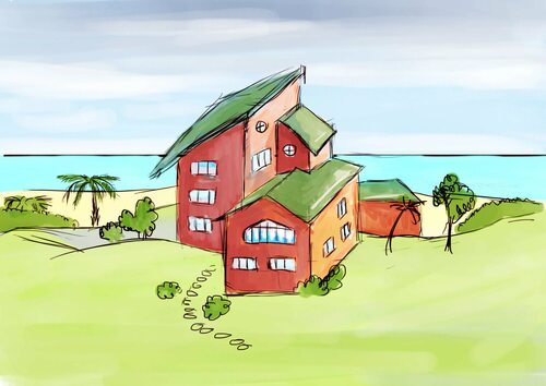 На этом рисунке вы можете увидеть маленький домик, расположенный на песчаном пляже. Вокруг него раскинулась зеленая трава, а вдали можно разглядеть море с его бесконечными волнами. Ребенок может использовать разноцветные карандаши или акварель, чтобы придать рисунку яркость и жизнь.