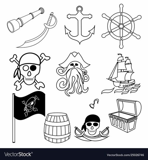 Черепы, кости, анкеры, рулевые колеса - все это символы пиратов, которые часто встречаются на их кораблях и атрибутике. В рисунках вы увидите эти символы, которые добавляют атмосферу пиратства.