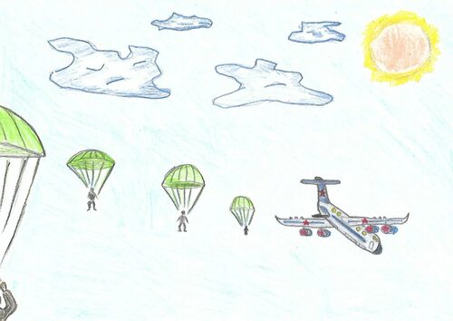 Попросите вашего ребенка изобразить десантника, который спускается с парашютом. Пусть он нарисует фон - небо и землю, а на них разместит десантника в полете. Поделитесь с ним интересными фактами о десантниках, чтобы его рисунок был еще более реалистичным.