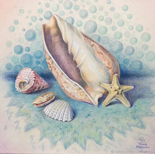 Ниже представлены несколько примеров детских рисунков с натюрмортом ракушек: