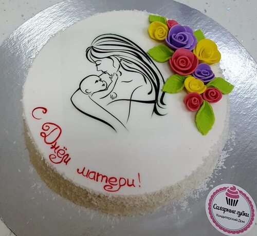 1. [Вставить фотографию торта с изображением мамы и ребенка]