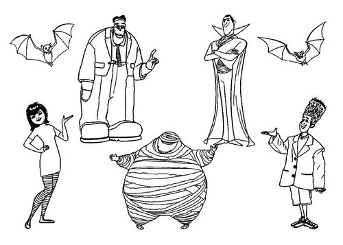 - Фотографии с персонажами из фильма "Монстры на каникулах" (можно найти в интернете или использовать готовые раскраски)