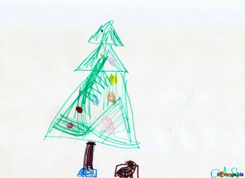 Если у вас нет под рукой кистей и красок, можно воспользоваться фломастерами для создания уникального детского рисунка новогодней елки. Для этого возьмите лист бумаги и разноцветные фломастеры.