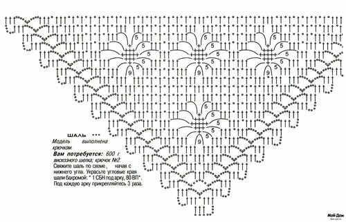 Вот пошаговая инструкция по созданию рисунка для шали крючком: