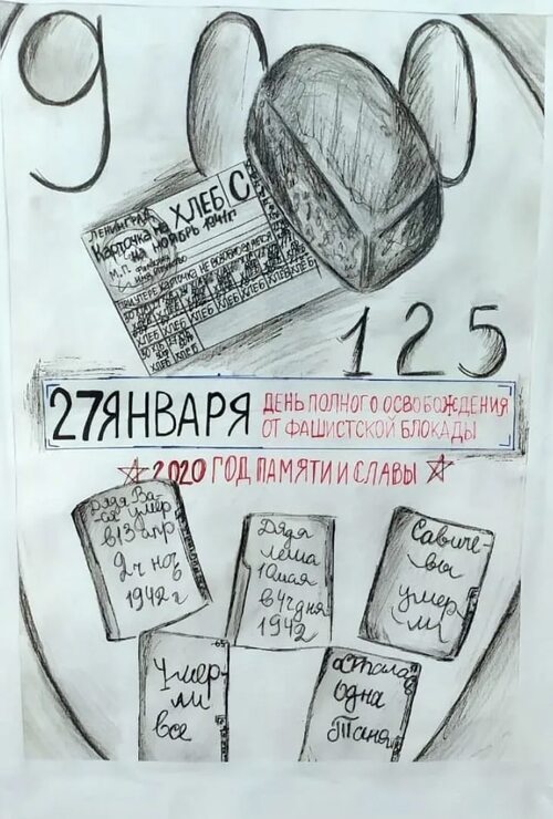 Попросите ребенка нарисовать символы блокады Ленинграда, такие как блокадный хлеб, пропускной билет, памятник защитникам Ленинграда или символическую ленту. Это поможет детям лучше понять значение этих символов и уважение к истории.