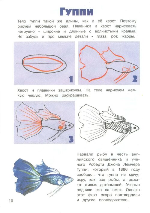Вставьте здесь фотографии каждого этапа рисования гуппи. Начиная от наброска контура и заканчивая окончательным окрашиванием. Помогите ребенку разобраться в каждом шаге и вдохновите его на творчество!
