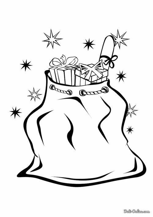 - Покажите рисунок Мешка Деда Мороза вашему ребенку и похвалите его усилия.