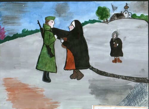 3. Фото 3: Рисунок группы детей, объединенных в танце Марша Славянки.
