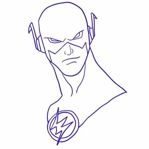 Теперь переходите к добавлению деталей лица и тела флеша. Нарисуйте глаза, нос, рот и уши. Затем добавьте контуры мышц на теле, подчеркнув его силу и грацию.