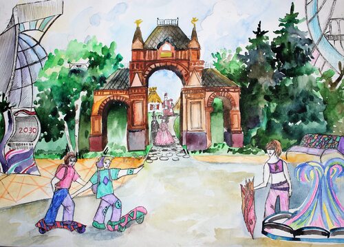 Четвертый рисунок показывает Олимпийский парк, который расположен в Краснодаре. Это место, где проводились соревнования во время Олимпийских игр. Ваш ребенок может нарисовать спортивные сооружения или своего любимого спортсмена, вдохновленного олимпийским духом.