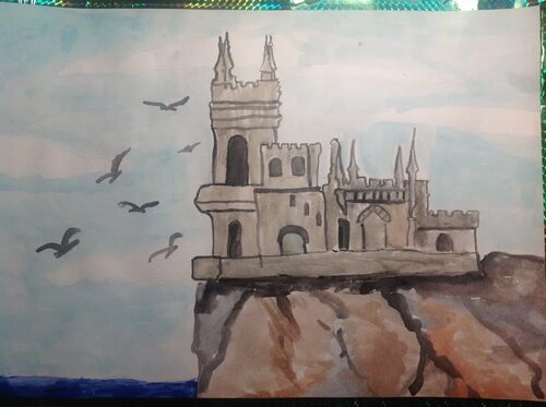 1. Рисунок ласточкино гнездо на фоне летнего неба
