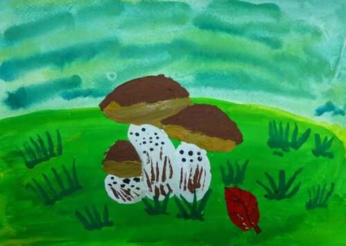 Вдохновитесь фотографиями самых ярких и оригинальных детских рисунков грибов на поляне:
