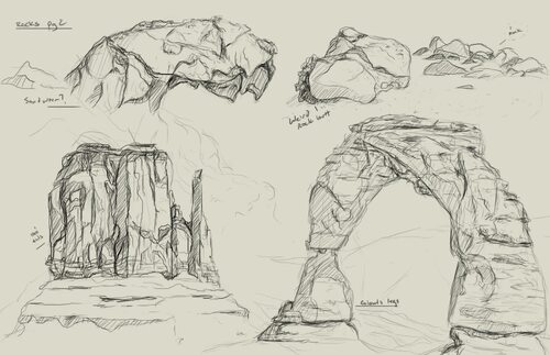 Помните, что в этом шаге главное - создать основу рисунка, поэтому не бойтесь экспериментировать и вносить изменения в контуры скалы.