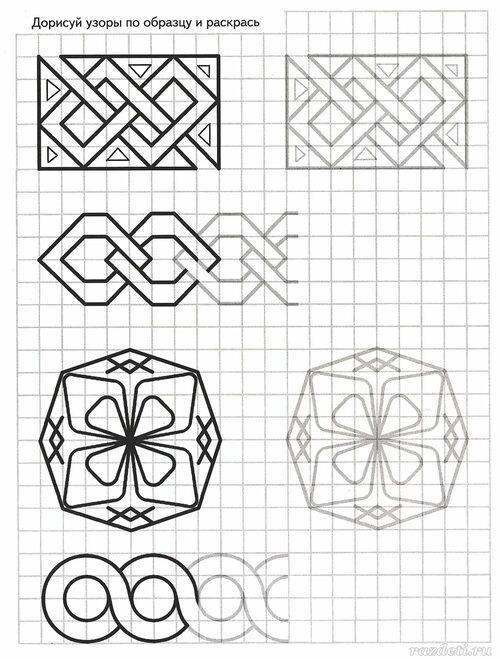 Далее представлены несколько примеров легких узоров, которые вы можете создать с помощью карандаша и клеточной бумаги: