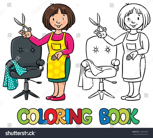Нарисуйте инструменты, которые парикмахер использует, например, ножницы и гребень.