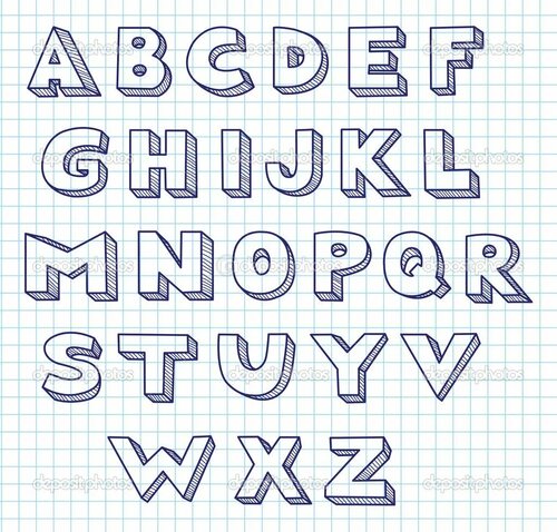 Примеры рисунков по клеточкам объемных букв