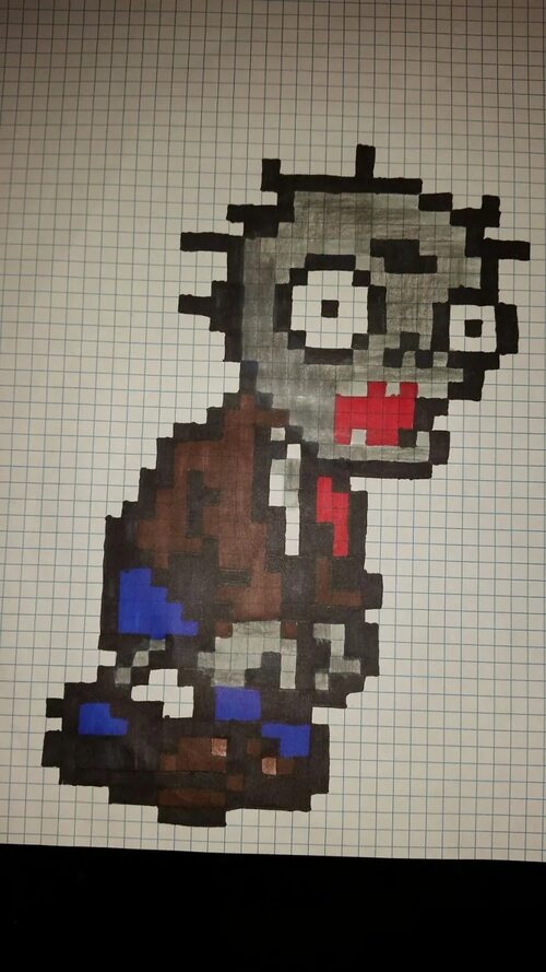 Используйте свои навыки рисования, чтобы перенести рисунок зомби на сетку. Каждая клеточка сетки будет соответствовать одному пикселю. Постарайтесь быть внимательными и точными, чтобы рисунок получился максимально качественным.