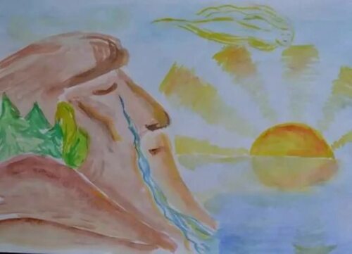 2. Рисунок утеса в горах