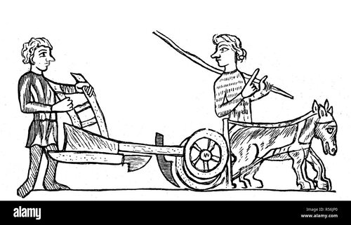 В средневековой деревне ферма занимала важное место. На рисунке мы видим фермера, который заботится о своих животных. Он кормит корову, а рядом пасется стадо овец. Фермеры трудятся усердно, чтобы обеспечить себя и своих соседей пищей.