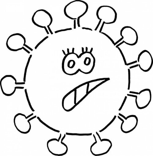 Простуда - это одно из самых распространенных заболеваний, вызванных вирусами. Раскрасьте изображение вируса простуды, используя цвета, которые ассоциируются с этим заболеванием, такие как синий и фиолетовый. Вы можете придумать историю о том, как вирус простуды воздействует на организм и вызывает симптомы, такие как насморк и кашель.