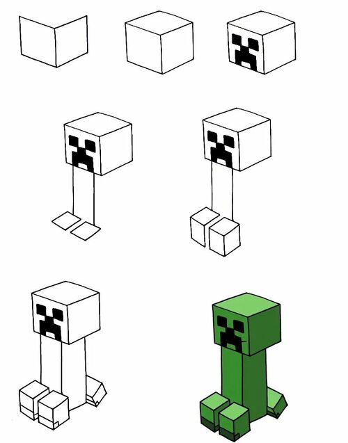 Начинайте с общих форм и пропорций, затем постепенно добавляйте детали. Постарайтесь сохранить правильные пропорции и анатомию крипера, чтобы ваш рисунок выглядел реалистично и узнаваемо.