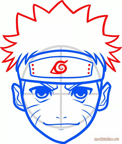 После того, как вы создали основу, переходите к добавлению деталей лица Наруто. Нарисуйте форму глаз, уши и прическу. Не забудьте о его знаковом лисьем хвосте, который можно изобразить в виде волос.
