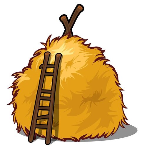 - Добавьте детали, нарисовав мелкие палочки и пучки сена на верхней части стога.