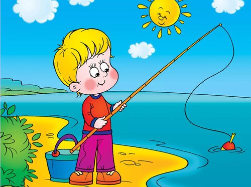 1. Рисунок рыбака на берегу озера