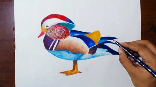 Пришло время оживить нашу утку мандаринку яркими цветами. Выберите цвета для тела, крыльев, хвоста и других частей тела утки. Помните, что утка мандаринка имеет своеобразную окраску, поэтому старайтесь передать это в своем рисунке.
