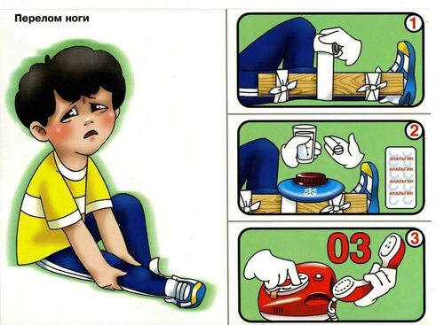 Если у ребенка есть подозрение на перелом или вывих, важно обеспечить ему неподвижность и предотвратить дальнейшие повреждения. На фотографии ниже показаны основные шаги по оказанию первой помощи при переломах и вывихах.