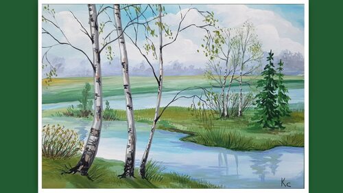 А что если мы сольем все весенние элементы вместе и нарисуем весенний пейзаж? Возьмите лист бумаги и карандаш, и начинайте рисовать весенний пейзаж.