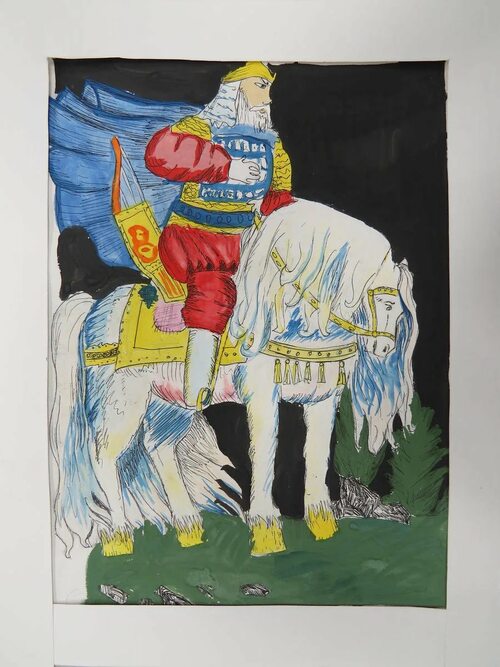 Мы пригласили талантливого художника, чтобы он создал рисунок, отражающий глубину и драматичность песни о вещем Олеге. В результате его работы, перед нами открывается удивительный мир сказочных ландшафтов, героев и событий, оживающих на бумаге. Каждая деталь рисунка пропитана эмоциями и передает атмосферу баллады.