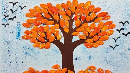 3. Осенний пейзаж. Попросите ребенка нарисовать осенний пейзаж с деревьями, листьями и птицами. Он может использовать краски или карандаши. Похвалите его за его усилия и постарайтесь выразить свои впечатления о его работе.