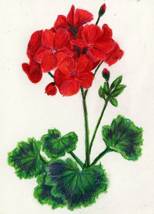 Карандаши – это классический инструмент для рисования. Предложите ребенку нарисовать герань карандашами на бумаге. Обратите внимание на детали цветка, листьев и стебля. Пусть ребенок экспериментирует с разными тонами и оттенками, чтобы передать объем и текстуру герани. Результатом будет реалистичный и красочный рисунок.