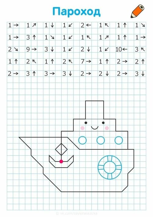 Вдохновитесь этими фотографиями рисунков по клеточкам парохода, созданными другими талантливыми детьми: