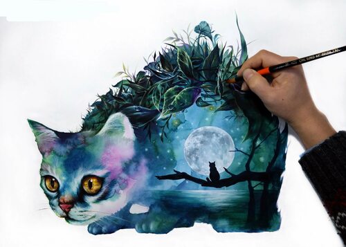 Рисунки котиков в технике коллажа