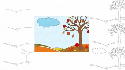 Теперь возьмите карандаш, который будет использоваться для рисования деревьев, и начните добавлять их на ваш рисунок. Разместите деревья на фоне так, чтобы они выглядели гармонично и создавали атмосферу осени.