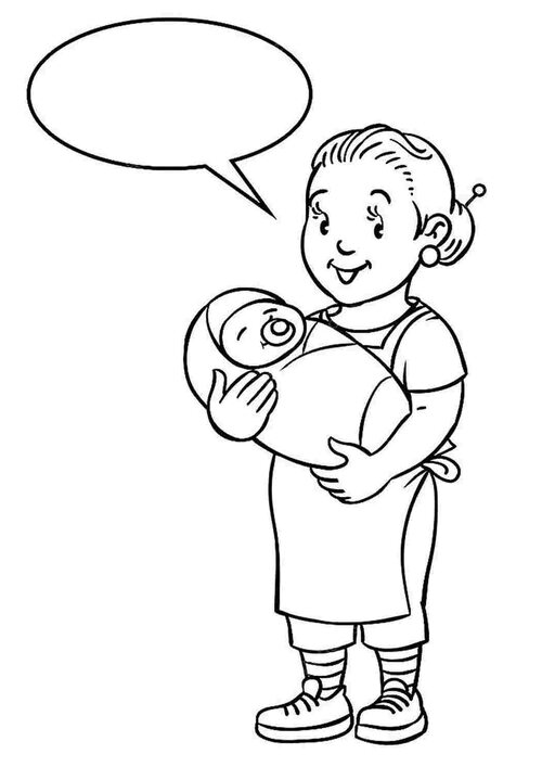 Для начала предлагаем распечатать контурную картинку няни на белой бумаге. Ребенок сможет самостоятельно раскрасить картинку, используя карандаши или краски. При этом можно подумать о цвете формы няни, ее волос и одежды. Эта активность поможет развить мелкую моторику, а также представить, как может выглядеть настоящая няня.