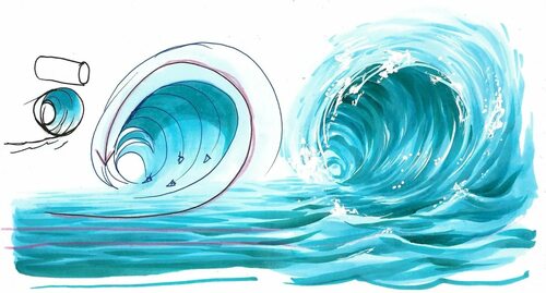 Сначала нарисуйте контуры будущего рисунка. Используйте легкие линии карандаша, чтобы можно было легко стереть их в будущем. Определите форму воды и ее движение на вашем рисунке.