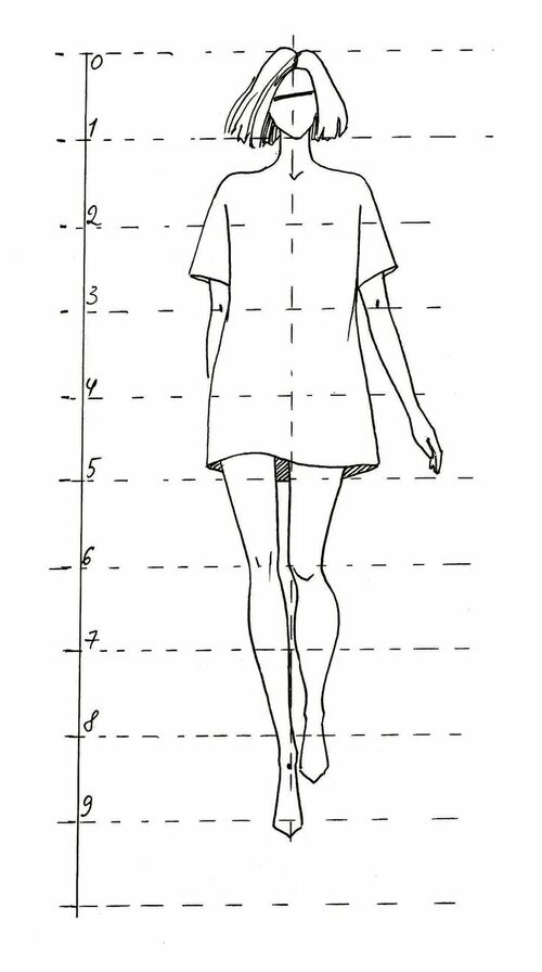 - Добавьте горизонтальные линии - линию плечей, линию талии и линию бедер.