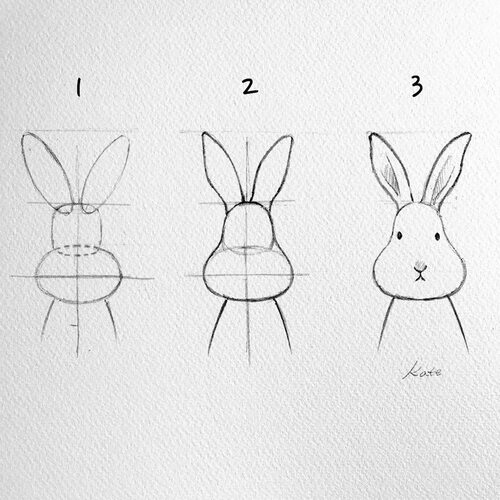 Возьмите свой карандаш и на пустом листе бумаги нарисуйте овальную форму - это будет голова кролика. Добавьте две вертикальные линии снизу овала - это будут передние ножки кролика. Затем нарисуйте две большие ушки, начиная от верхней части головы. Не бойтесь исправлять и корректировать линии по ходу рисования. Важно, чтобы вы были довольны формой и пропорциями.