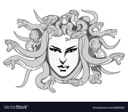 Голова горгоны - это мифическое существо из древнегреческой мифологии. Она изображается как женская голова с змеиными волосами. Горгона обладает способностью обращать людей в камень своим взглядом. Дети часто интересуются этим персонажем и хотят нарисовать его на бумаге.