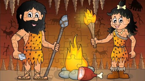 Рисунок дикаря в пещере создает загадочную атмосферу и позволяет детям представить себя героями приключенческих историй.