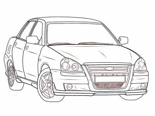 Если тебе нравятся спортивные автомобили, то этот рисунок тебе понравится! Раскрась Ладу Приору в яркие цвета и добавь спортивные элементы, чтобы создать неповторимый образ.
