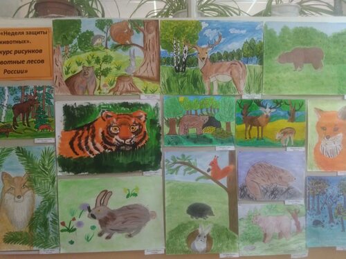 Вот несколько примеров рисунков, созданных детьми в рамках Недели защиты животных: