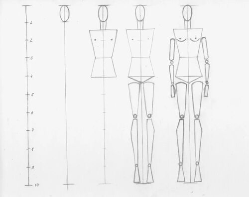 Сначала начинайте рисовать общую форму модели с помощью легких линий. Не беспокойтесь о деталях, просто зафиксируйте основные контуры модели.