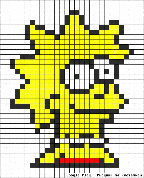 Ниже представлены фотографии различных этапов рисования Лизы Симпсон по клеточкам: