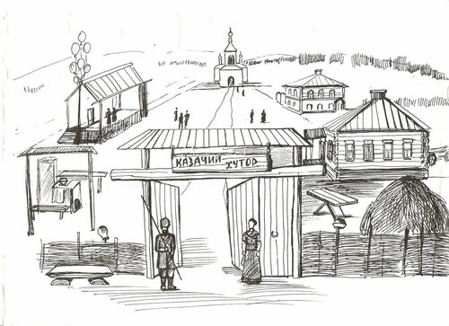 На этой раскраске изображен казачий курень в зимней местности. Ребенок может использовать белые оттенки для раскрашивания снега, а также выбрать цвета для деревьев и куреня. Такая игра с цветами поможет развить его воображение и способность видеть красоту в окружающем мире.