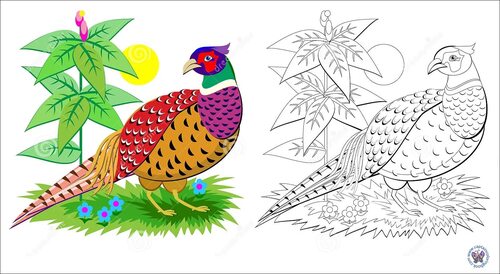 - Окрасьте фазана, используя яркие цвета карандашей или фломастеров.